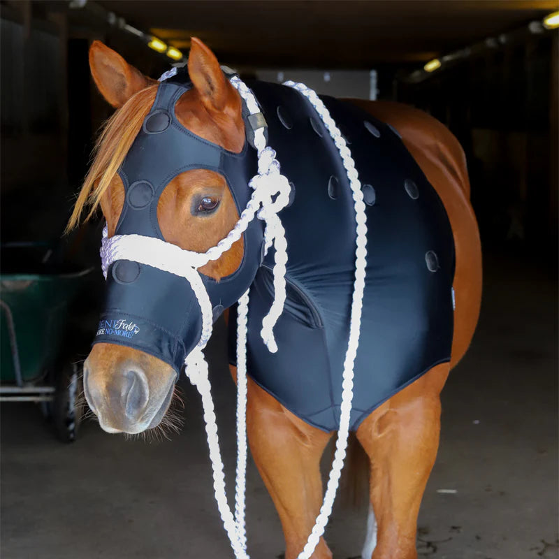The flexible Lycra fabric keeps head, neck, and shoulder muscles warm, supple, and relaxed while stimulating recovery time. This design targets the TMJ points, Governing Vessel 24, neck, shoulders and poll—ultimately, reducing pain and stiffness. Also used as a calming tool by helping to reduce anxiety and promote relaxation.